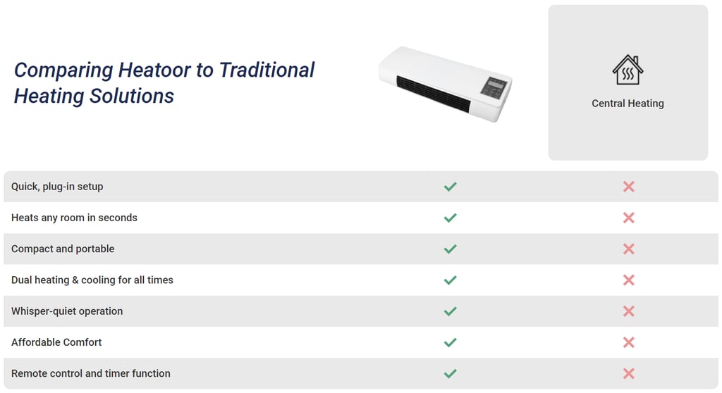 From a practical standpoint, Heatoor appears to be positioned as a convenient supplemental heating solution rather than a full home heating replacement. Its compact size, lack of installation requirements, and simple controls make it appealing for renters, small spaces, or anyone seeking additional warmth during colder months. Overall, the offer combines ease of use, promotional pricing, and a straightforward return policy, which may help potential buyers feel more confident in their purchase decision.